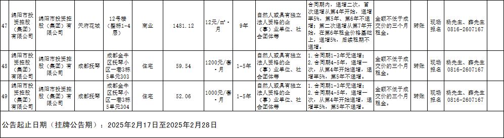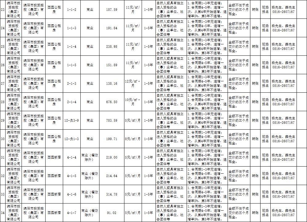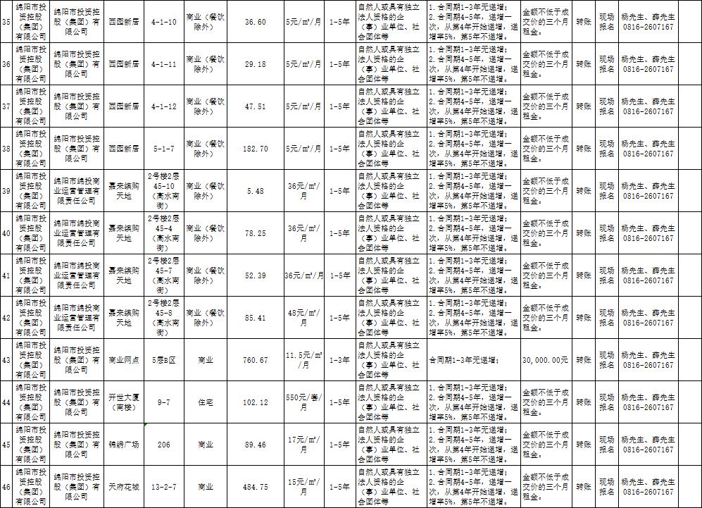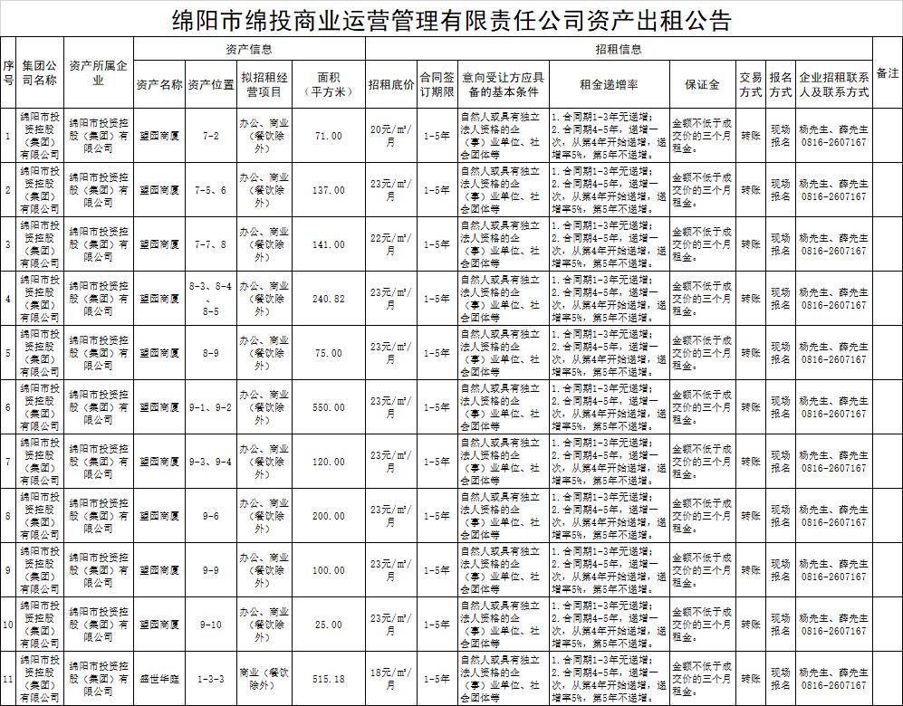 绵阳市best365足球官网商业运营管理有限责任公司资产出租公告