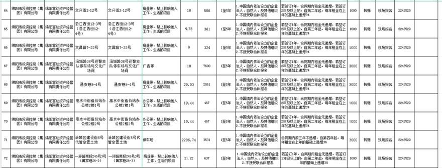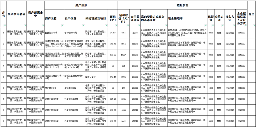绵阳富达资产经营有限责任公司出租公告