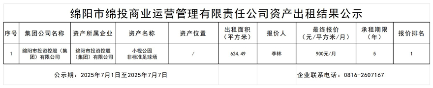 绵阳市best365足球官网商业运营管理有限责任公司资产出租结果公示